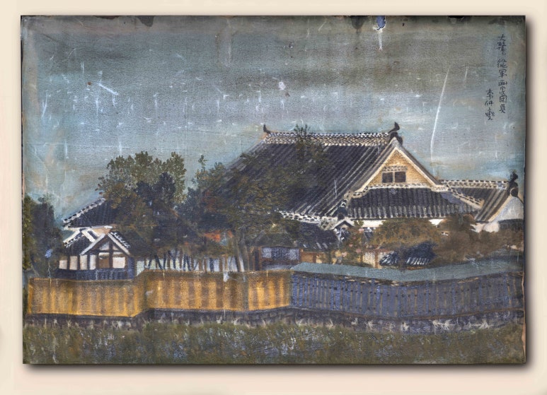 그가 남긴 극소수의 군 시절 작품 중에서도 건축적 정밀성과 회화적 감성이 공존하는 보기 드문 예로, 전쟁의 풍경 대신 조선의 고유 건축과 평화로운 일상 공간을 선택했다는 점에서 예술가로서의 내면 저항과 향토적 정체성이 엿보입니다.